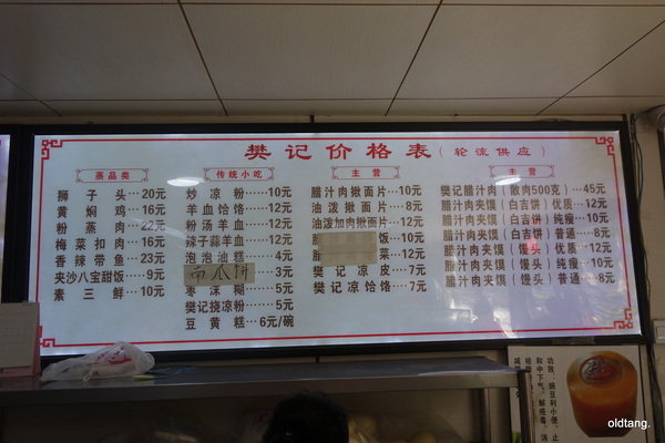 樊記的價格表.臘汁肉夾饃.不管白吉餅或饅頭.價格都在8元.10元及12元.