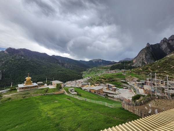 草坡盡頭有金塔.做為拉桑寺的前衛.