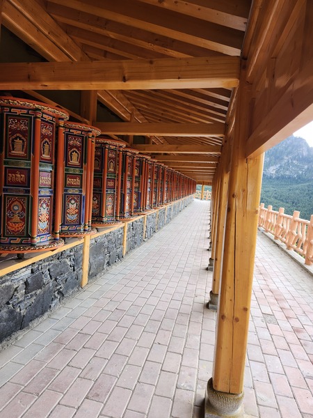 上下層間所建的門廊.設有轉經輪的長廊.形成拉桑寺的亮點.