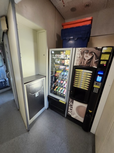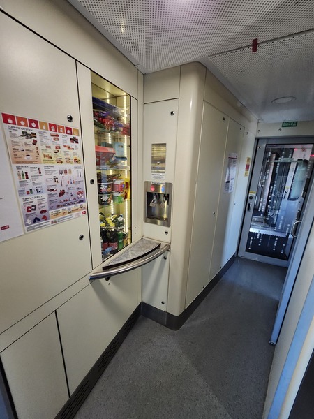 軟臥車廂一端.設有飲水機及販賣機.