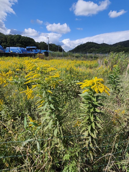 四國除滿山遍野的柿子外.另外.最常見的就是這種菊科的加拿大菊.