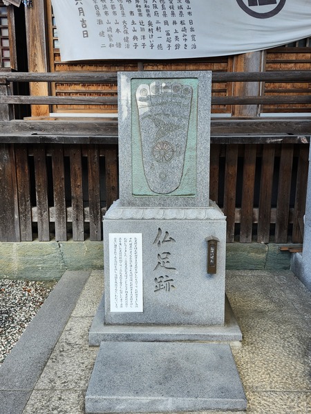 佛足跡(佛足石).在日本許多寺院.包括遍路上的若干寺院.都能看到有個大足印的石碑.供朝聖者頂禮.觸摸.參拜.這是印度佛教信仰的標誌.代表釋迦牟尼的腳印.