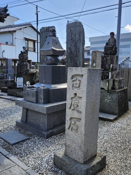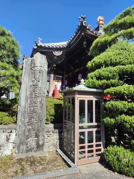 大師堂前.古老的井戶寺的寺碑.有趣的是.旁邊有電話亭.