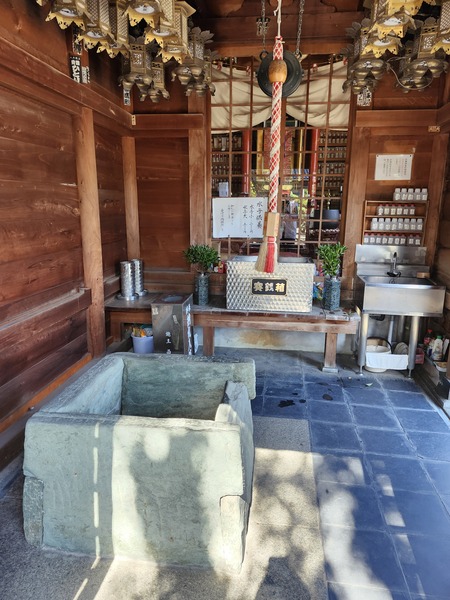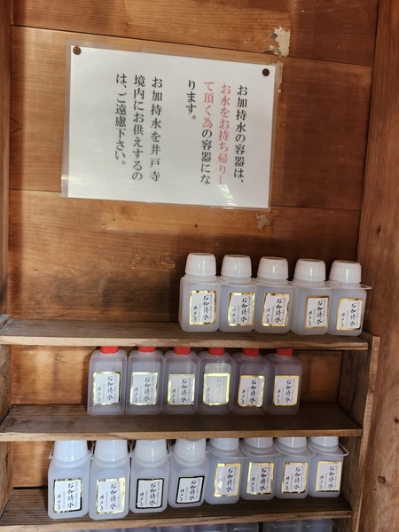 據說.水是經過大師加持的.如果想索取的話.可以在賽錢箱投入100元硬幣.用寺院提供的容器裝水帶回家喝.以祈求平安健康.