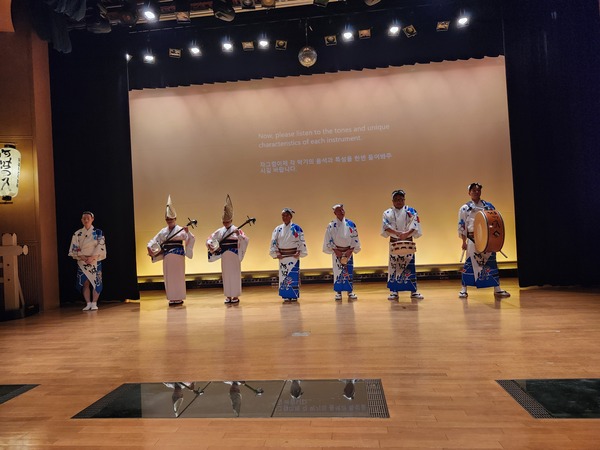 阿波舞的樂器團.表演時.就在右側演奏.