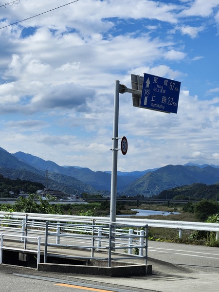 在地藏紅綠燈.按鶴林寺的指標右轉22號縣道.來到勝浦川畔的16號縣道T字路口.