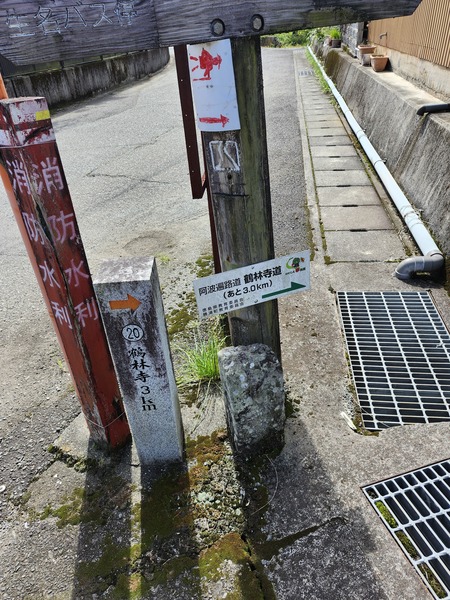 四國遍路道指標.從生名到此0.8公里.到鶴林寺2.3公里.