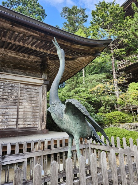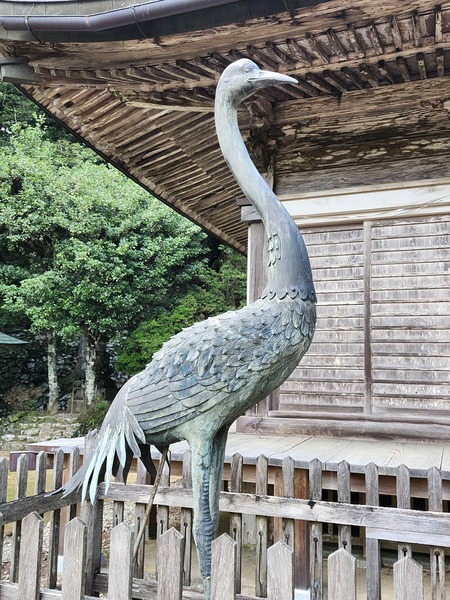 本堂前.有一對雌雄雙鶴銅像.