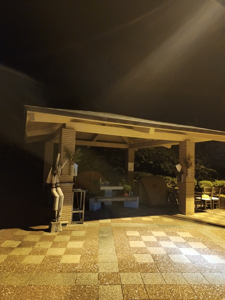 鶴林寺參拜完.回到山下的生名村落.才下午2點多.要往水井舊小學校露營.第一次騎錯方向.騎到勝浦町的勝浦川橋頭.發現不對.用Google導航.要往早上來的22縣道.回到22縣道路口的LAWSON超商.再用Google導航.竟要我們騎勝浦町的勝浦川橋頭.就這要被Google導航來回騎了3趟.花了2個多小時.真是鬼打牆!最後請問勝浦川橋頭的派出所.警員列印地圖給我.要往回騎22縣道.到那賀川的持井橋.不要過橋.右轉28縣道.加茂谷橋前.再右轉19縣道.沿那賀川畔前行.此時.天已全黑.沒有路燈.摸黑前進.國外騎車多次.第一次在夜間騎車.經十八女町.終於來到水井町.這裡只有十來戶住家.水井舊小學校也全無燈光.看來已不像網路所說可以露營.只得到路邊的遍路休息亭露營.這裡沒有雜貨店買水.休息亭對面住家敲門也沒有回應.只得自行取用該住家路邊的澆花水龍頭來用.