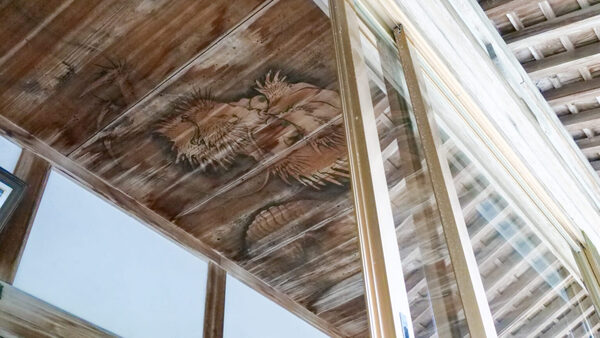 龍天井.竹村松嶺所作.描繪了栩栩如生的祥龍於屋頂棚板上.據說這是為祈求風雨而繪製.