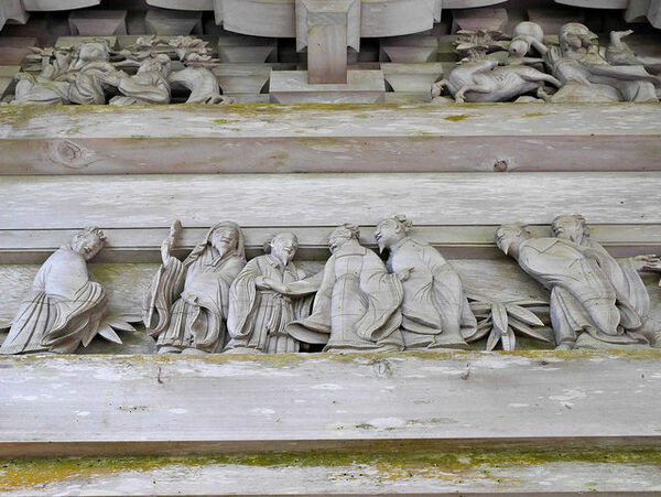 迴廊雕刻是中國竹林七賢.司馬光童年軼事主題.