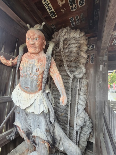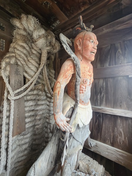 山門.左右古樸的力士雕像.及信士供奉的大草鞋.