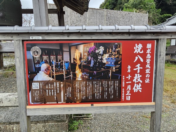 願求悉皆成就."燒八千枚供"法會看板.每年11月3日舉辦.看來這是該寺每年最重大活動.
