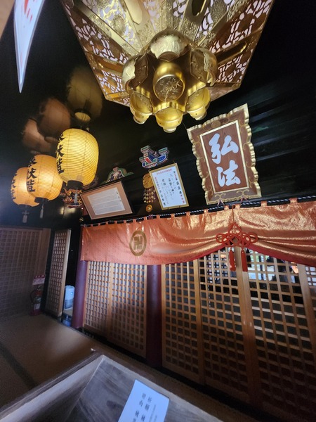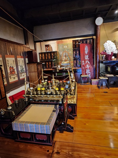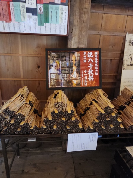 本堂內."燒八千枚供"法會看板.及法會時要燒的木材.