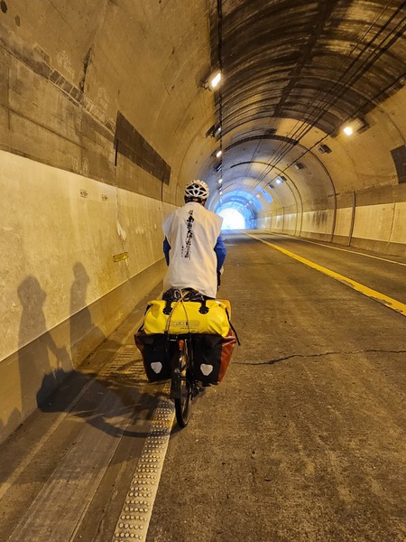 藥王寺旁邊有溫泉浴場.還有道之站.這是在街區旁.不適合露營.往前騎吧!55號國道的日和佐隧道.長690公尺.雖沒有單車道.而.這附近有高速公路.所以.車輛很少.