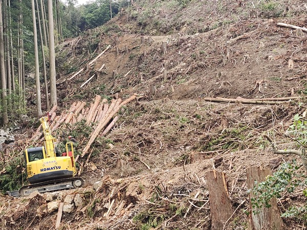 過隧道後.就以下坡為主.55國道旁.正在砍伐樹木.