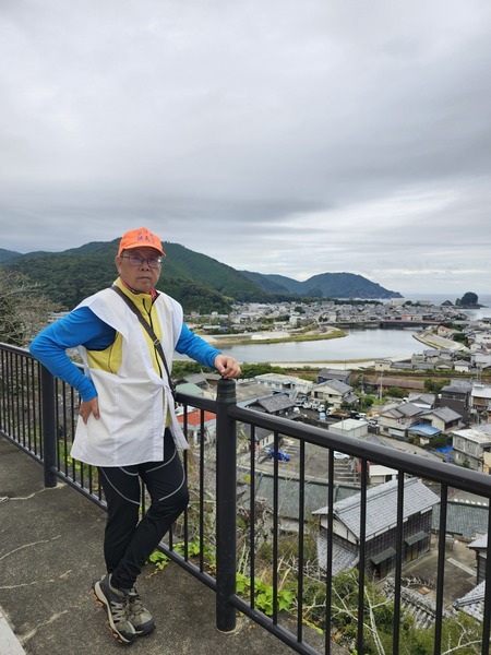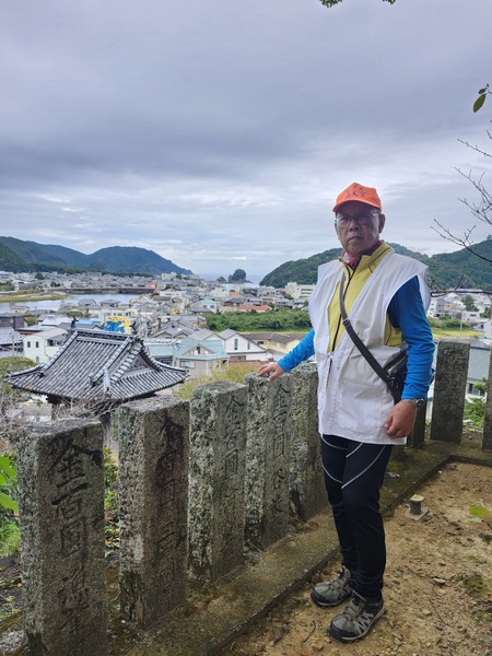 以奉納金石碑做成圍籬.下方就是日和佐街區.