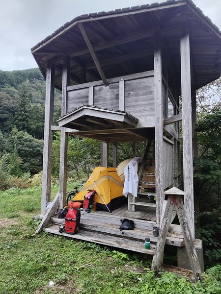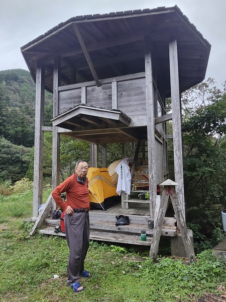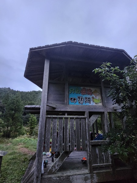 這個遍路休憩所.蓋得蠻不錯.兩層樓的木造建築.可遮雨.今晚就在這裡紮營了.