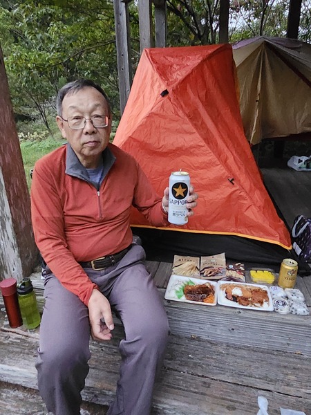 這裡唯一缺點.是沒有水龍頭及廁所.我們有買晚餐.但沒買水.就騎往下約500公尺的山河內JR小火車站取水.而.在公路旁的小攤就要到水.