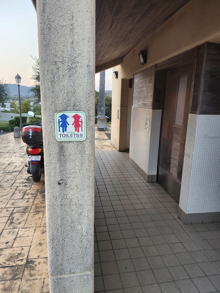 在"高知安芸自轉車道".悠閒的騎車.來到赤野.左側有休憩站指標.轉上去就是遍路標誌的公廁.