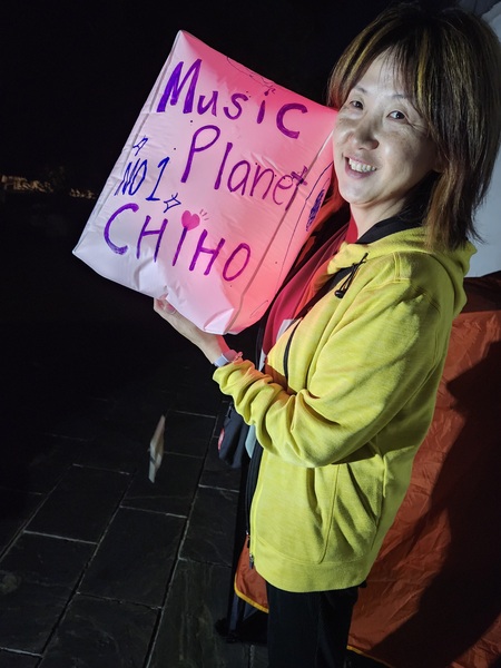 這位女性.來這裡溜狗及看夕陽.自介是小歌手.送我們糖果外.還放天燈(風箏式).
