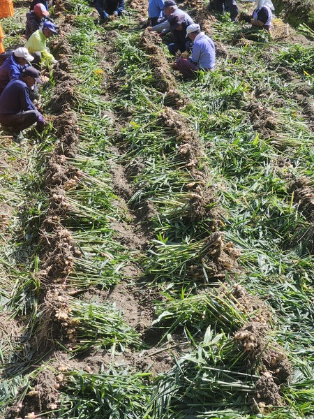 山谷農田.正在採收薑.