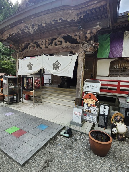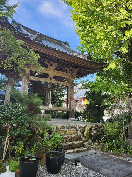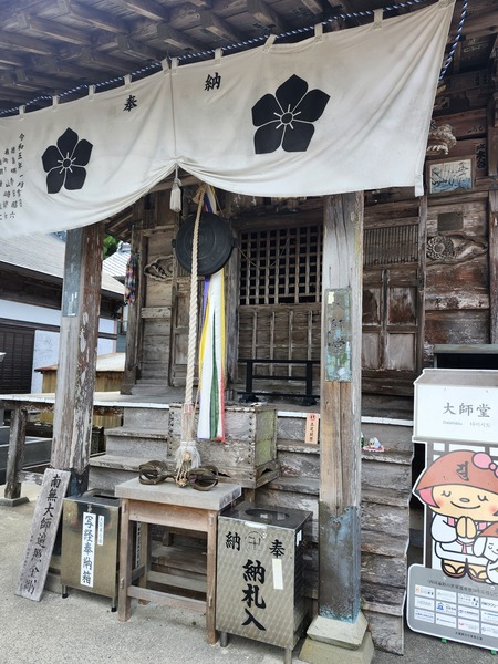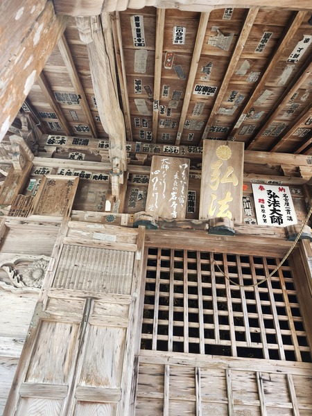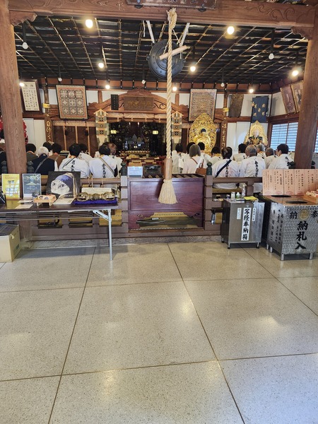 岩本寺.比較特別的是--不動明王.觀音菩薩.阿彌陀如來.藥師如來.地藏菩薩--五位本尊同供(如左名牌).係因當年空海大師在同一地建立五座宮.一之宮供奉不動明王.二之宮供奉觀音菩薩.中之宮供奉阿彌陀如來.四之宮供奉藥師如來.森之宮供奉地藏菩薩.後來.歷經戰亂.廢佛運動等變遷.重興寺院只好把五尊佛都供奉一起.本來五尊並不成套的佛菩薩.變成了集體本尊身分.這種情況的組合.是88寺院唯一特例.