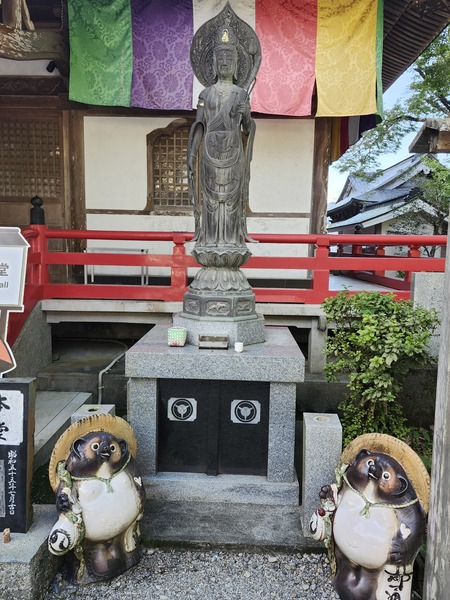 本堂外的菩薩雕像下方.有兩尊狸貓.