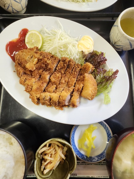 食堂只賣拉麵及豬排飯及其定食.價格親民.點的豬排飯定食.只要1000日幣.