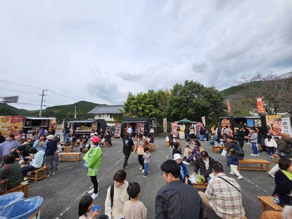 波斯菊農田旁的成妙小學校.正在辦社區園遊會.這裡仍屬宇和島市.