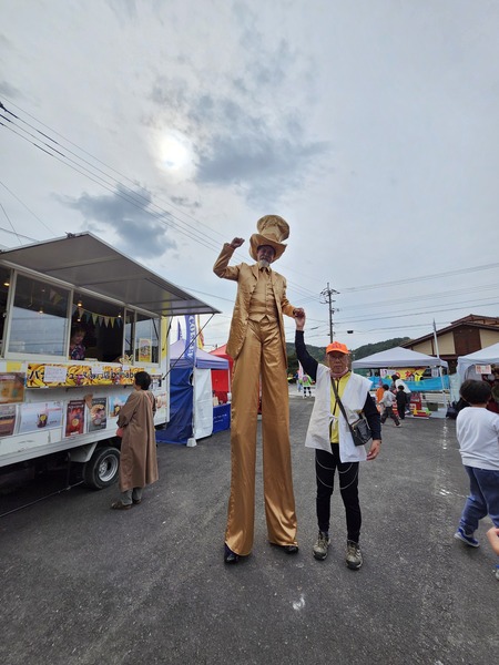 踩高翹的外籍藝人.增熱節慶氣氛.