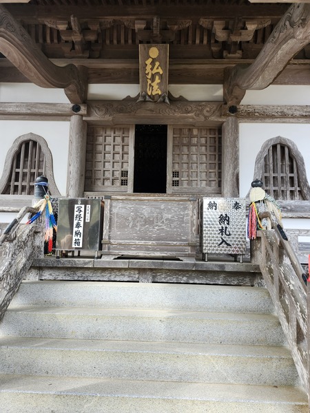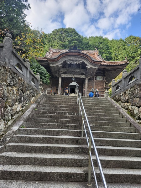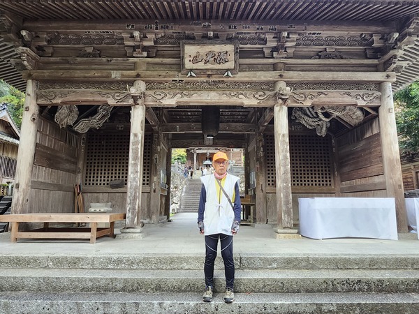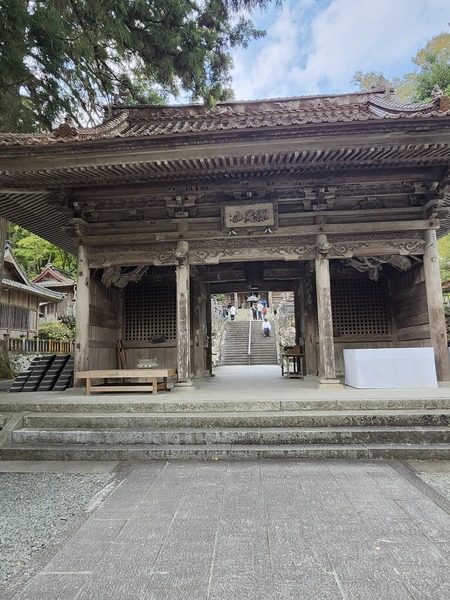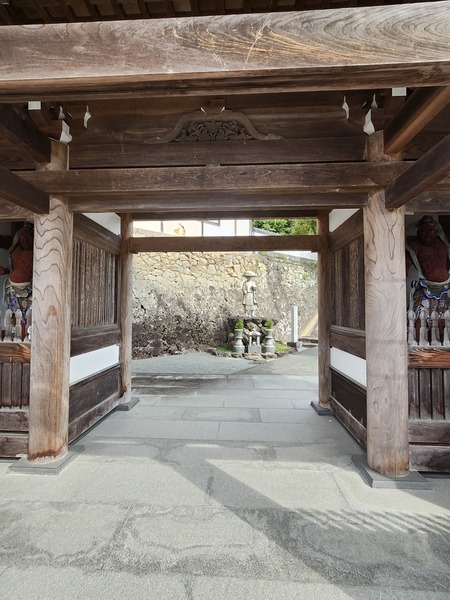 回看山門.是兩層木造山門.頗壯觀.山門內有御手洗及大師雕像.