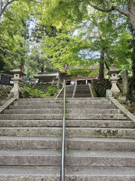 翠綠樹下的階梯參道.