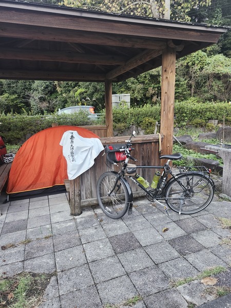 在大洲高爾夫球場附近.56國道旁的停車場.有公廁及遍路休憩屋.這裡就是今晚的營地.