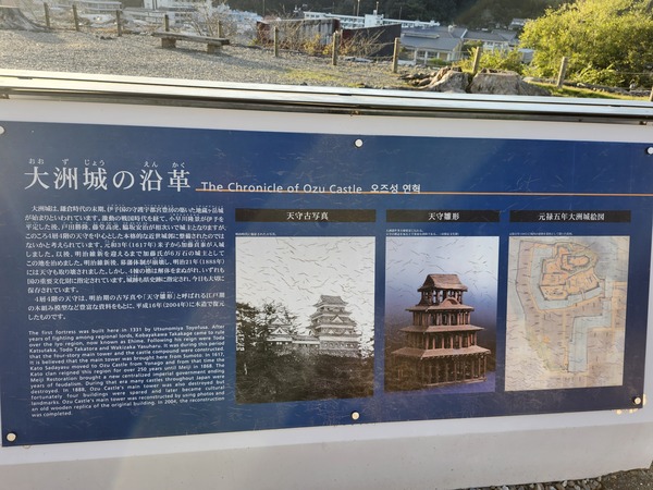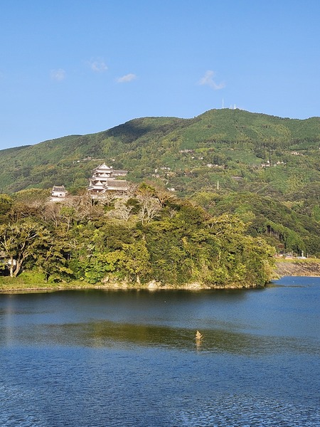 大洲城.位於俯瞰肱川的小山丘上.被開建的平山城.肱川成為天然的護城河.