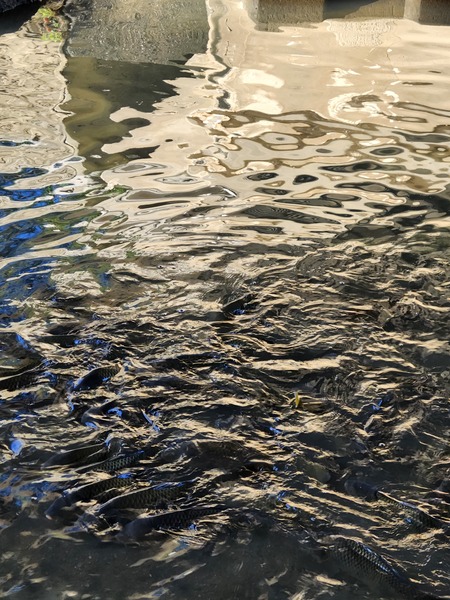 河中.滿滿的鯉魚.