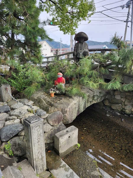 石手寺的古石橋.這是空海大師曾經走過的老橋.橋上有弘法大師石雕.