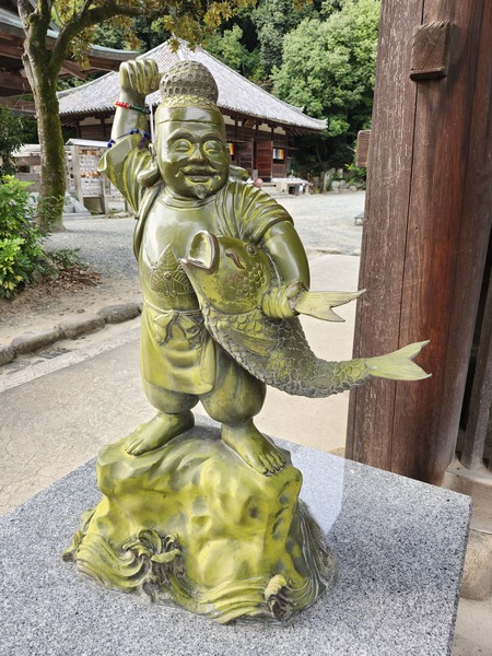山門右側.也是日本七福神中的財神[惠比壽].抱鯛魚的銅鑄.象徵著豐收與好運.