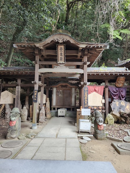 國寶山門(仁王門).建於1318年.高7公尺.寬4公尺.為兩層歇山頂式建築.是河野家贊助建造的.