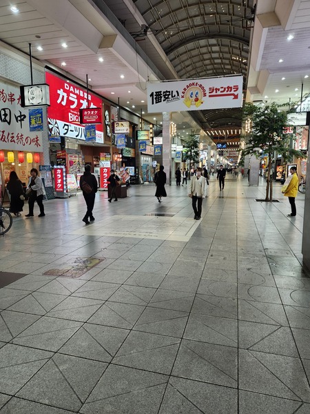 銀天街到大街道.有頂棚的商店街.是松山市最繁華鬧區.