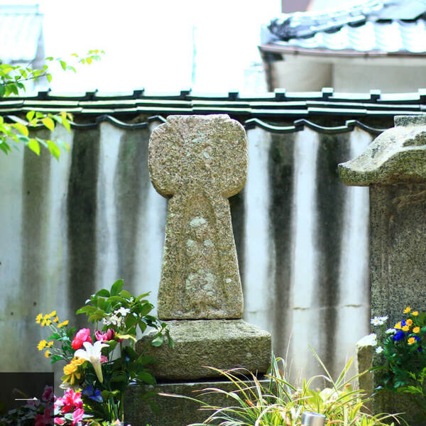 基督十字石燈籠.位於大師堂左側牆邊.高約40公分.十字架形狀.上面刻有聖母瑪利亞的肖像.在基督教被禁止的年代.這一區基督教徒多.寺院似乎也默許了隱密信徒的禮拜.