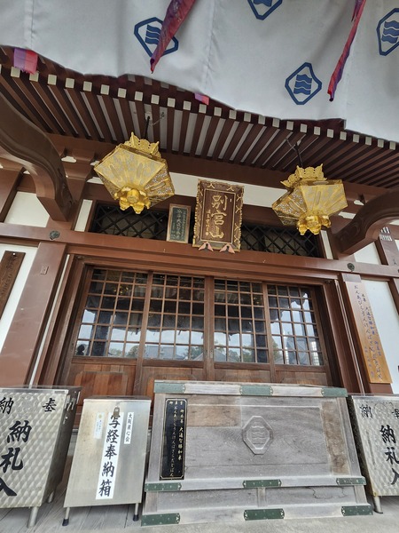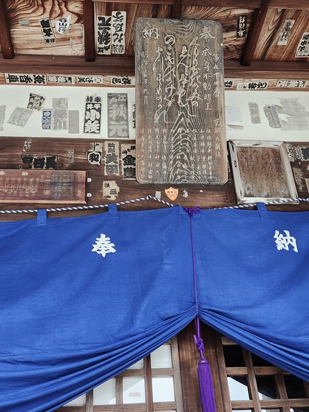 本堂天花板貼著奉納者名條.