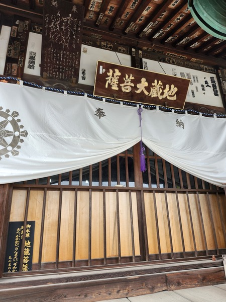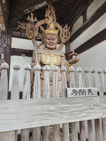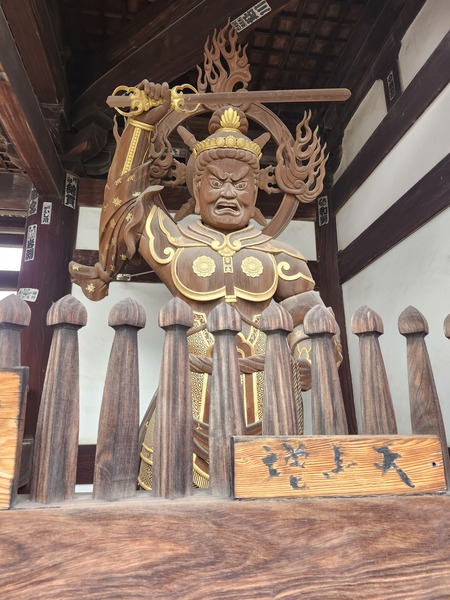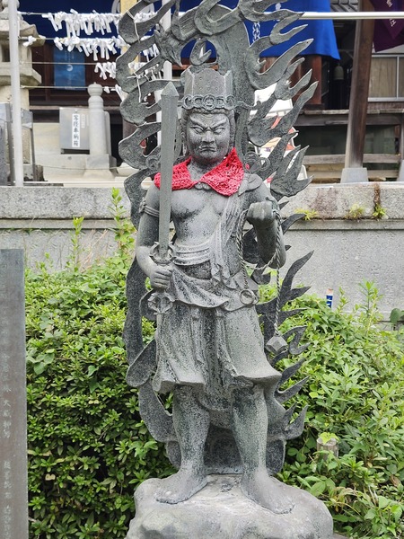 延命寺的本尊為不動明王.矗立在本堂前的這尊.頭戴王冠.是罕見的不動明王雕像.歷經多次火災卻倖存下來.因此命名為[火伏不動尊].是寺院亮點.