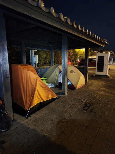 今天從松山第52番太山寺.到今治第59番國分寺.共朝聖8間寺院.時間很趕.離開國分寺時.已天黑.往前騎到[今治湯之浦]道之站.就在此紮營了.