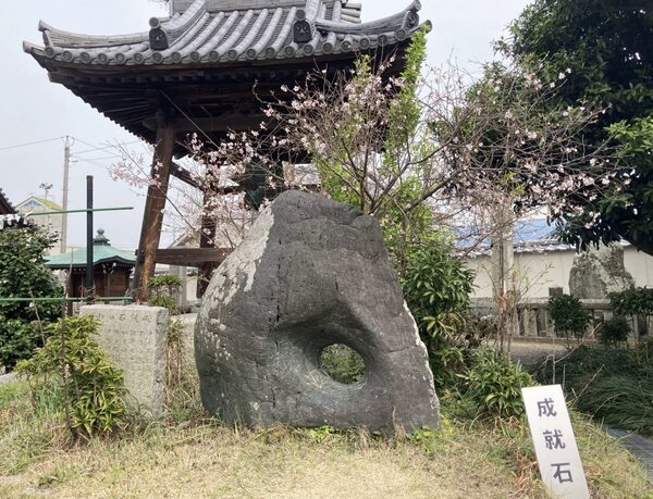 成就石.是寺院另一亮點.在手水舍右側.有一塊高約1公尺的石頭.底部中央有一個直徑約30至40公分的洞.據說.只要把朝聖的木杖.穿過其洞.便能實現願望.