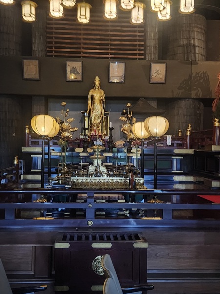 這棟外觀超級現代化的大聖堂.也是寺院亮點.落成於1976年.由棕色鋼筋混泥土製成.高度16公尺.這座現代建築的獨特之處.在於內部沒有一根柱子.一樓的大禮堂安裝了螢幕.二樓則為本堂和大師堂.
