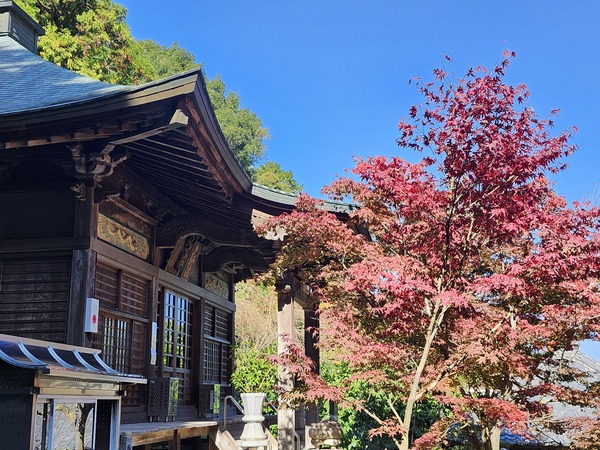 寺廟所在的這座山.以3至400年樹齡的櫻花而聞名.是一處春天賞櫻名勝.現在的秋天楓紅.也很漂亮.