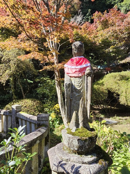 地藏菩薩石像.戴著紅色圍巾.象徵保護孩童和旅客的安全.