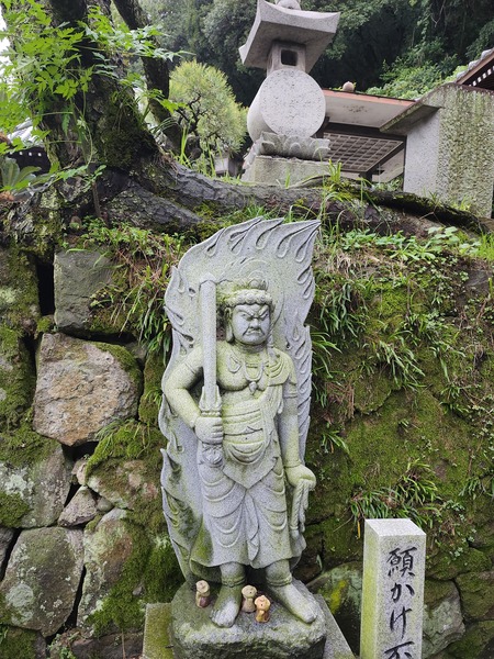 不動明王雕像.旁邊的立碑.述說弘法大師曾在此地岩窟.遇見不動明王的傳說有關.