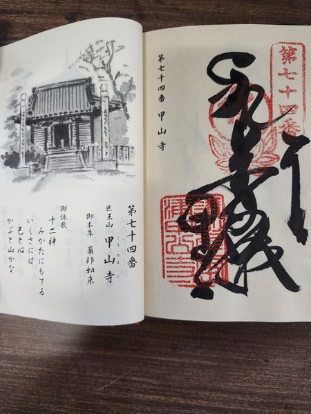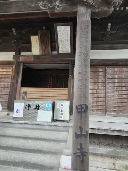 由上一番出釋迦寺下山.接48號縣道.2.5公里就到第74番甲山寺.由於寺院山形貌似古代將軍的鎧甲.弘法大師就把寺院命名為[甲山寺].